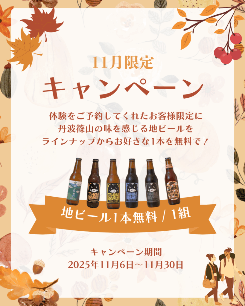 🍂11月限定!オータムキャンペーン開催✨体験予約で丹波篠山の地ビール1本プレゼント!