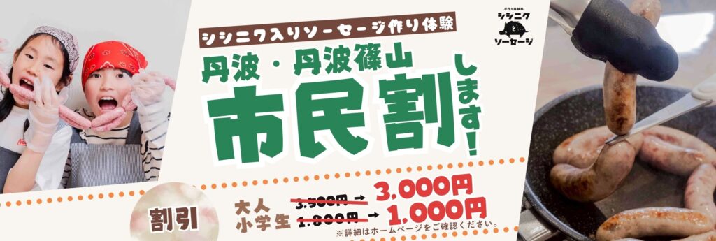 日頃の感謝を込めて、地元のみなさまにお得にソーセージ作り体験を楽しんでいただける「丹波・丹波篠山市民割」をスタートします🌿